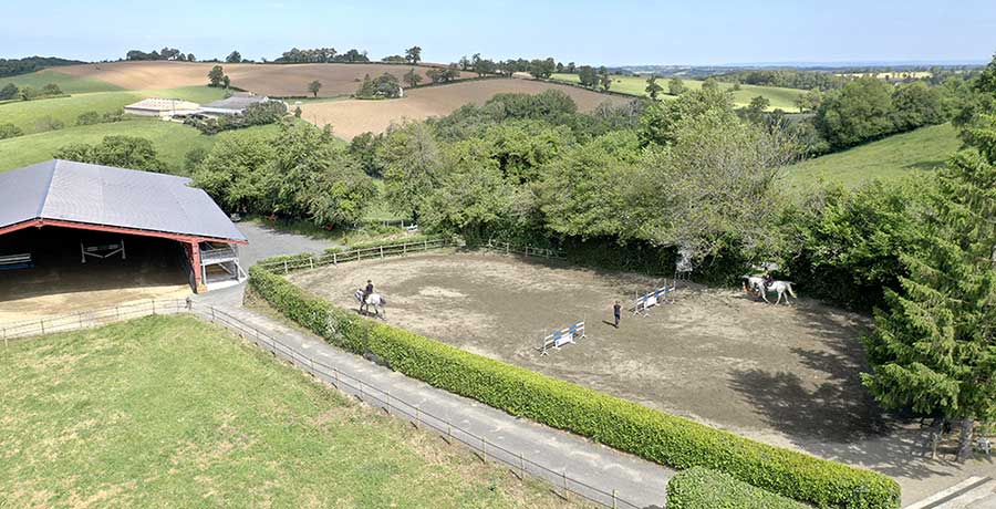 - Deux écuries couvertes : une de 8 box et une de 6 box